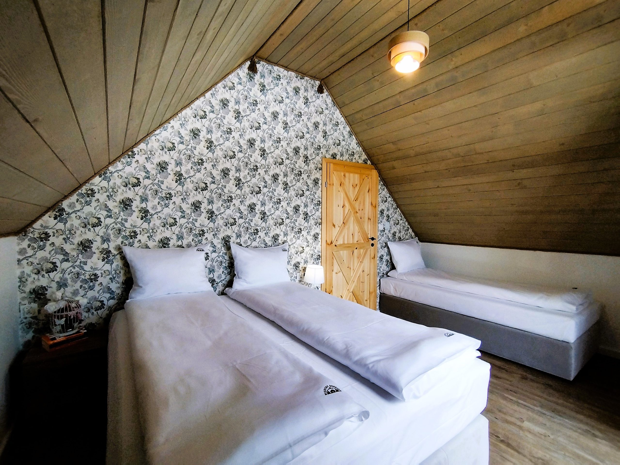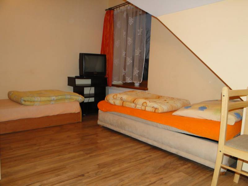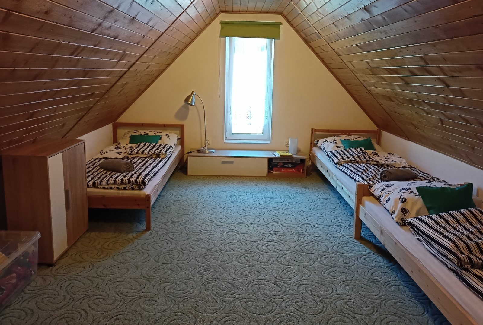 • Pokój nr 2: Trzyosobowy z łóżkami pojedynczymi i prywatną łazienką.