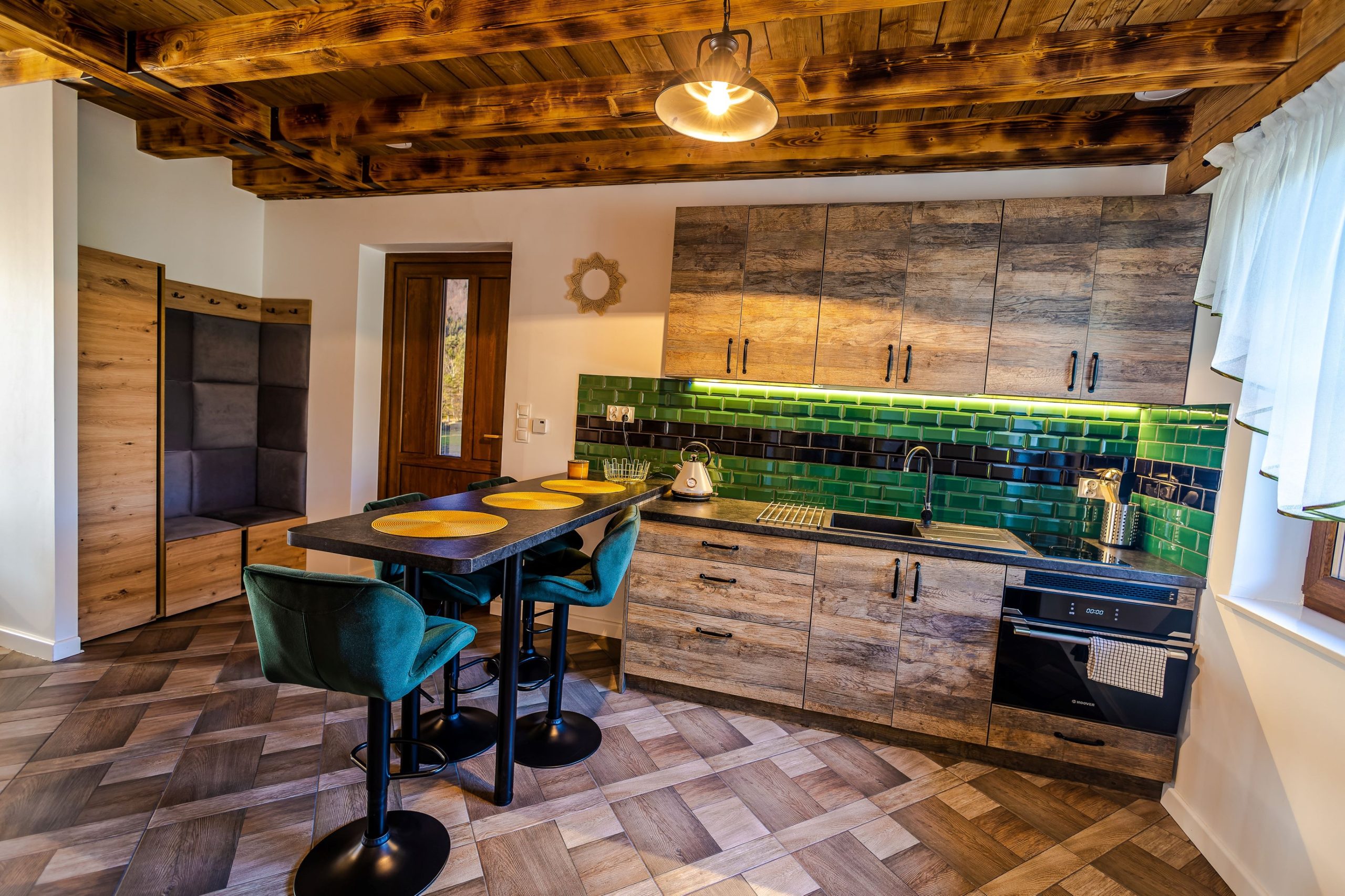 Komfortowe noclegi: 4 miejsca noclegowe w dwóch przytulnych pokojach, z których jeden wyposażony jest w bio-kominek, tworzący wyjątkowy klimat. Wyposażona kuchnia, jadalnia oraz łazienka. Garderoba i balkon z widokiem na góry.