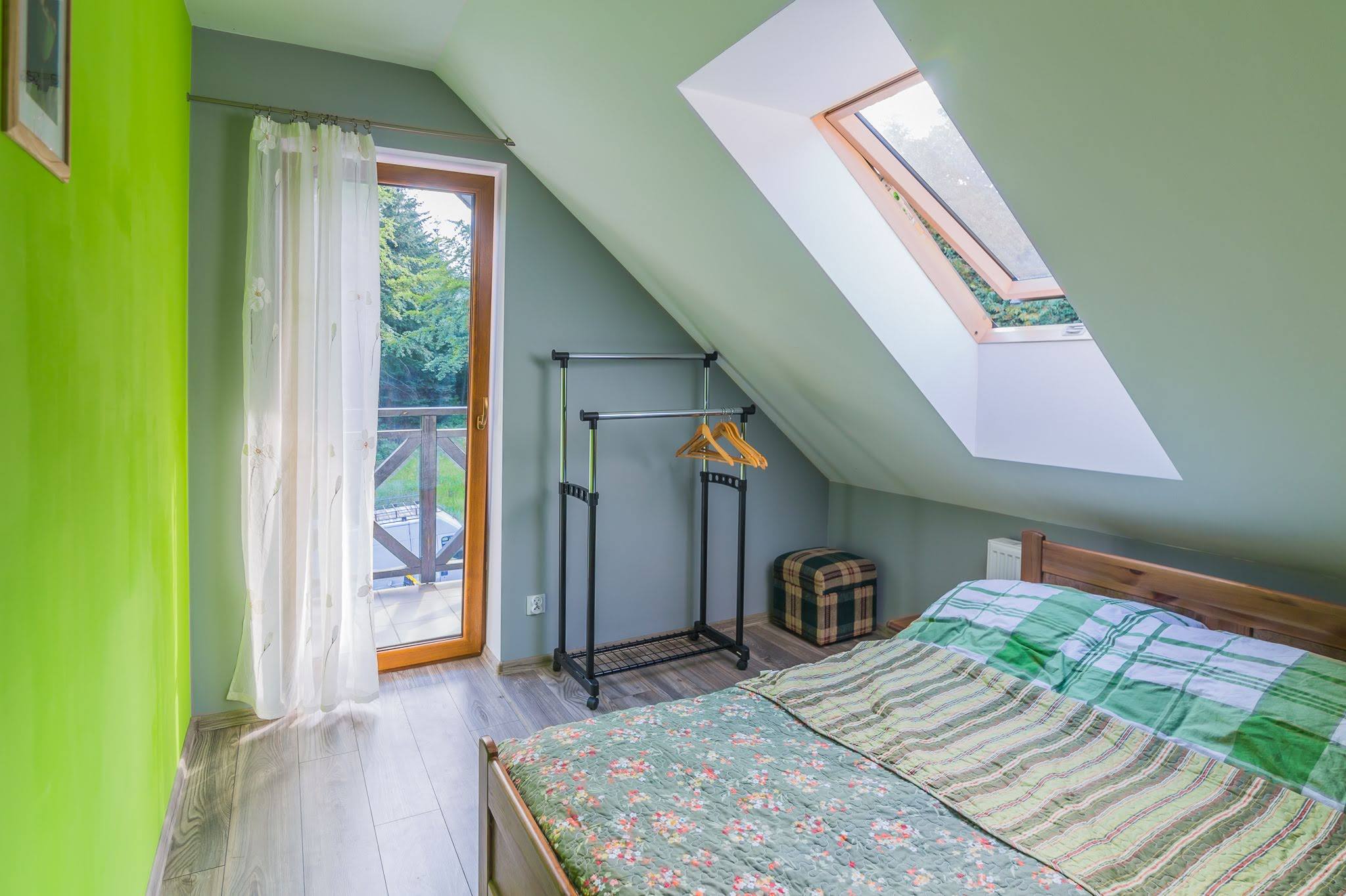 FELUSIOWA CHATA składa się z 2 kondygnacji, na parterze znajduje się salon z kominkiem, otwarta kuchnia, jadalnia, toaleta i wielki taras z zapierającym dech w piersiach widokiem na przełęcz Widoma, na piętrze dwie przestronne sypialnie i łazienka.
