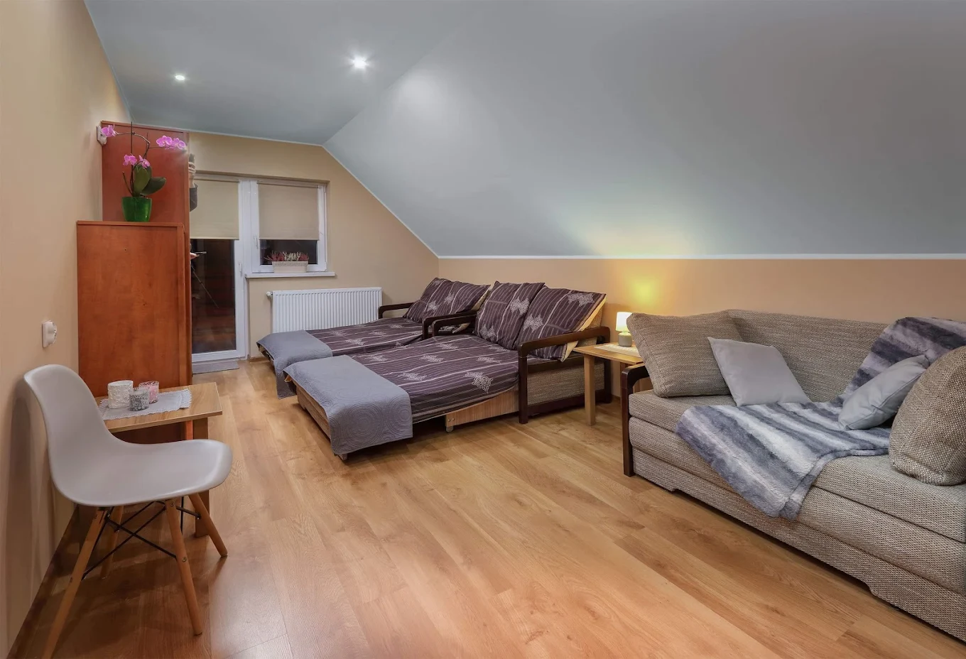Do dyspozycji Gości oddajemy 2 apartamenty 2-pokojowe z łazienkami i apartament 1-pokojowy. Z dużych okien można podziwiać panoramę Beskidu, która zachwyca o każdej porze roku. W obiekcie znajduje się kuchnia z jadalnią przystosowana do samodzielnego przygotowywania posiłków. Na zewnątrz zielony taras i bezpłatny parking.